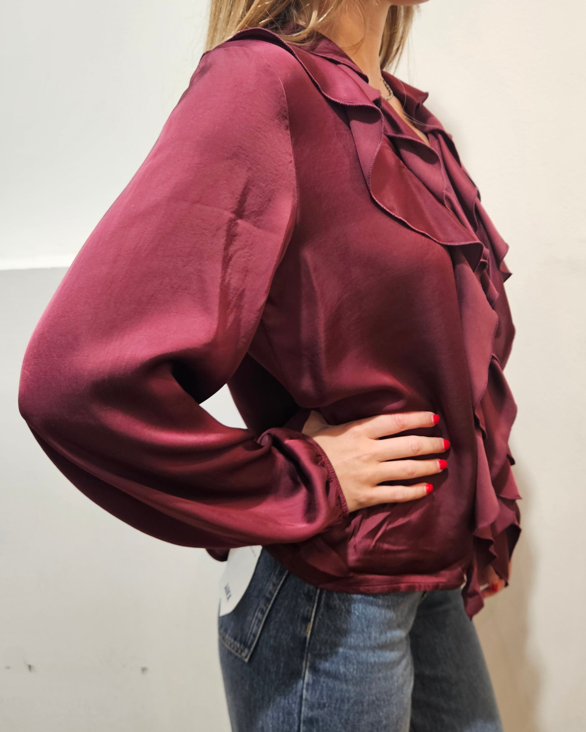 Camicia in viscosa con scollo a V Have One con rouches nella tonalità ciliegia.