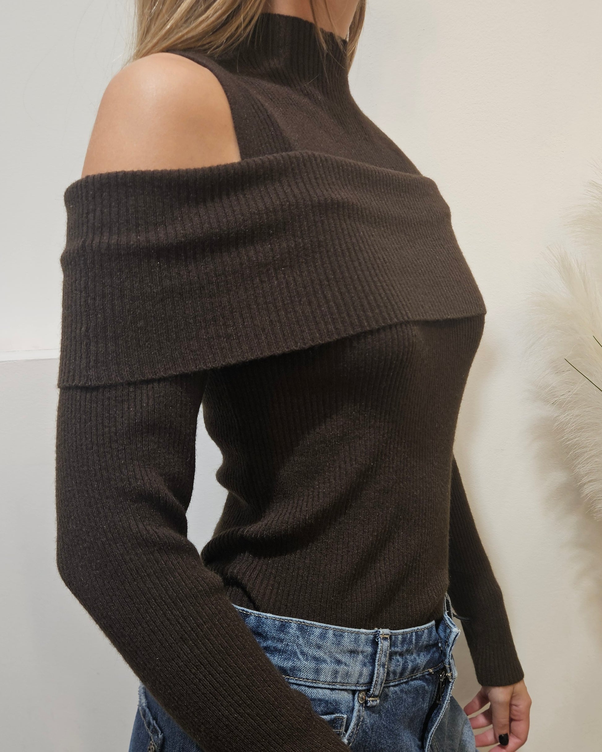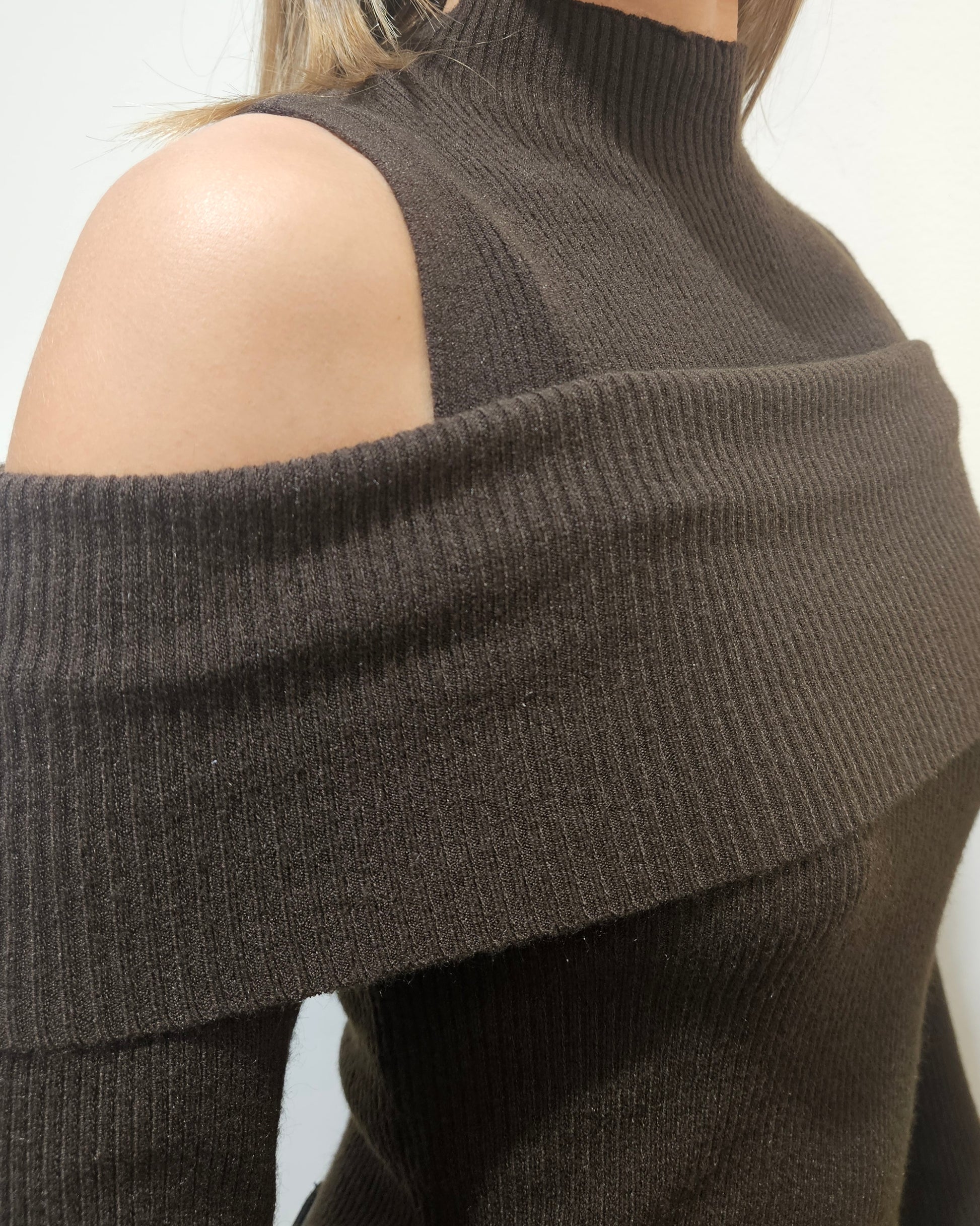 Lupetto a costine Have One nella tonalità caffè con dettaglio apertura sulle spalle.