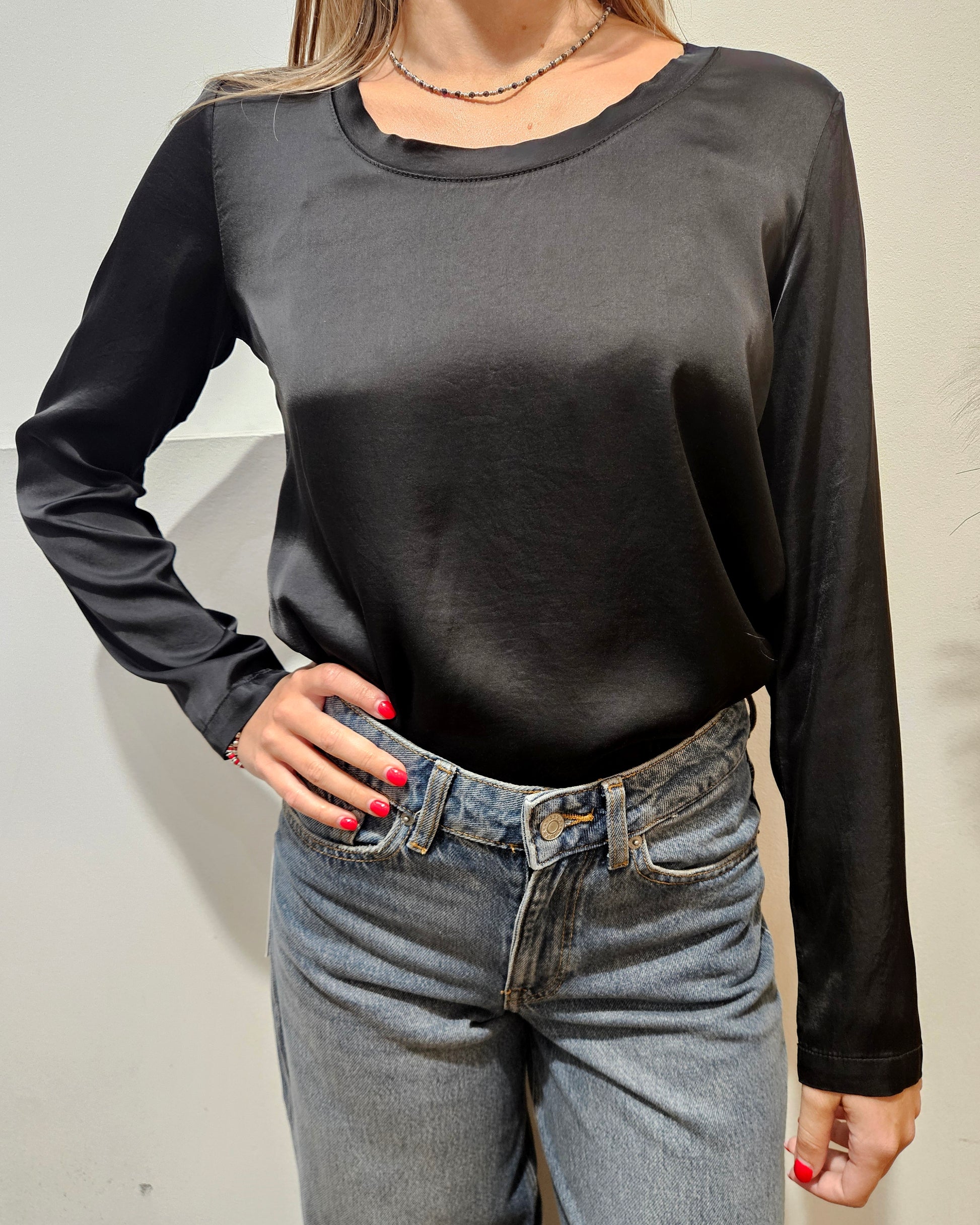 Blusa nera a maniche lunghe Have One in viscosa nella tonalità nero con scollo madonna.