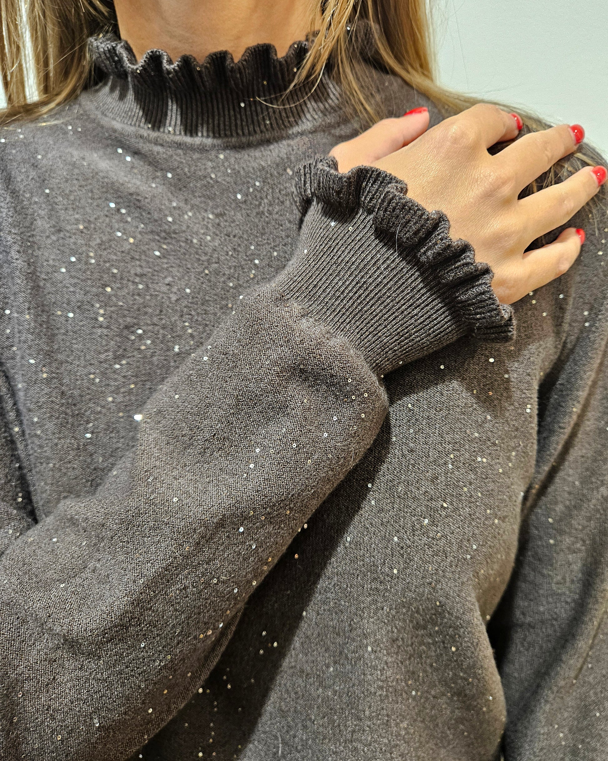 Maglia Have One con rouches nella tonalità moro con micro paillettes.