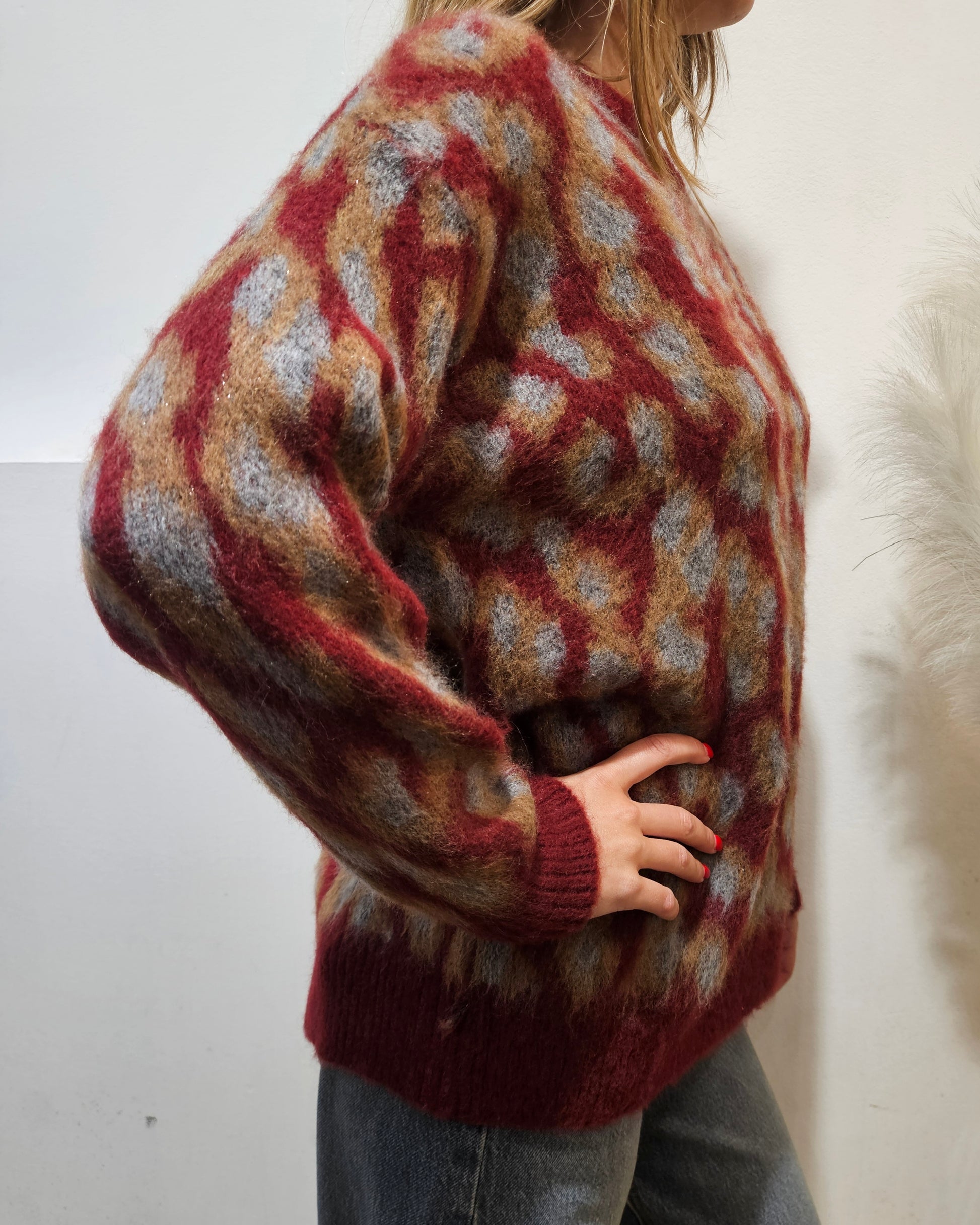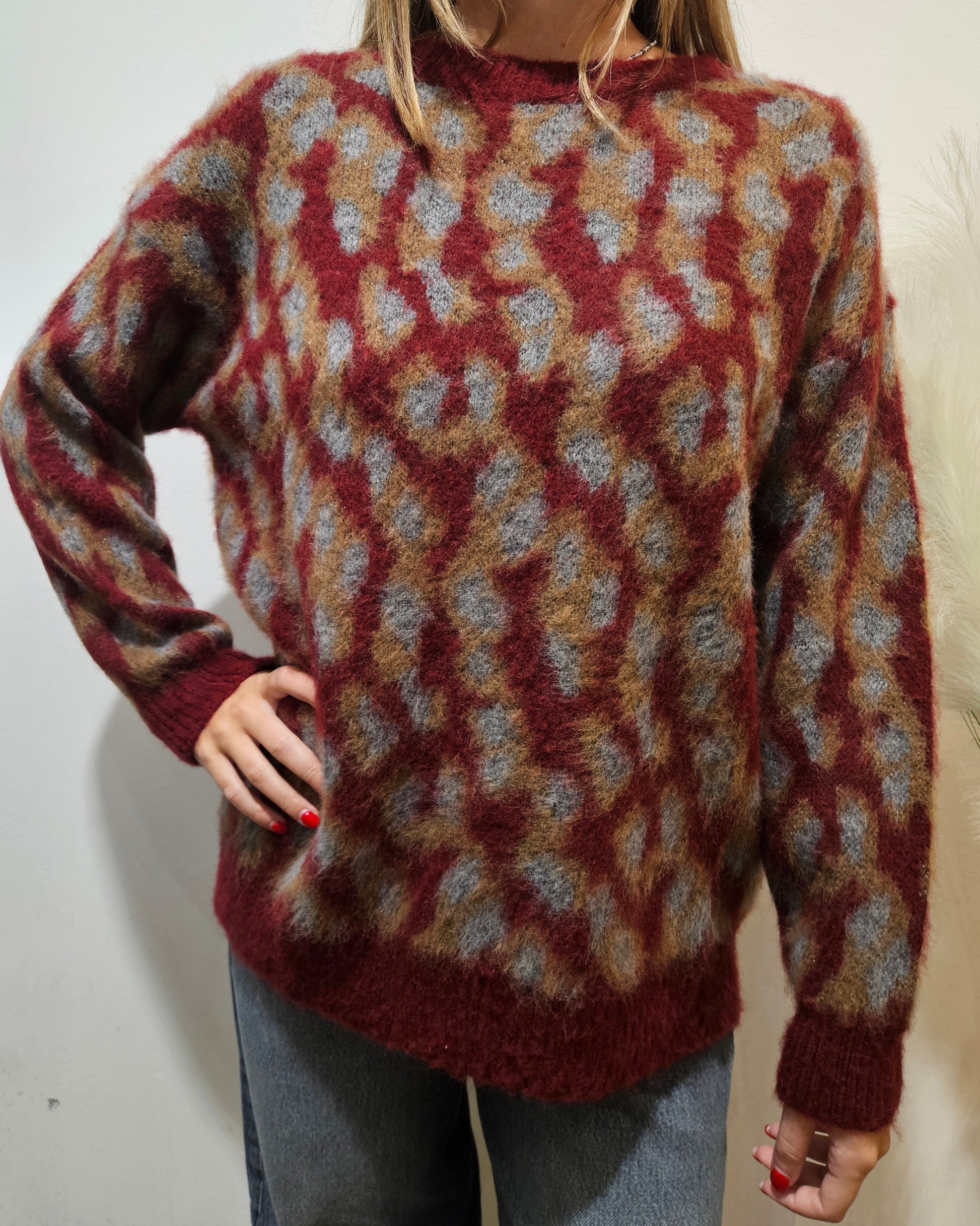 Maglia Have One paricollo jacquard nella tonalità vino.