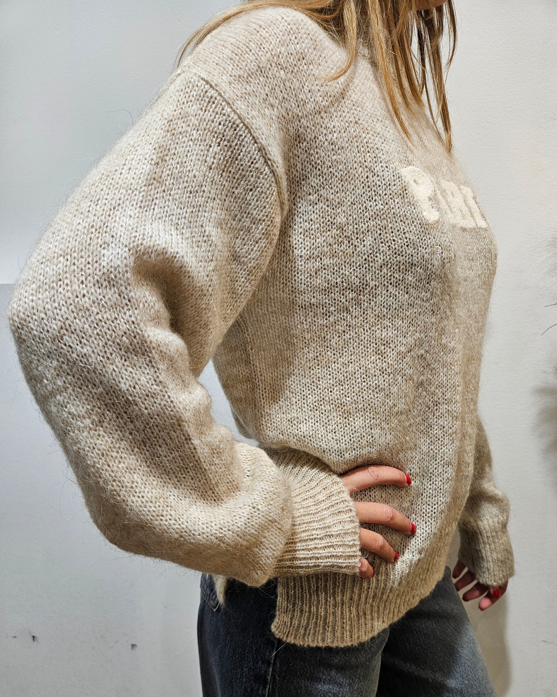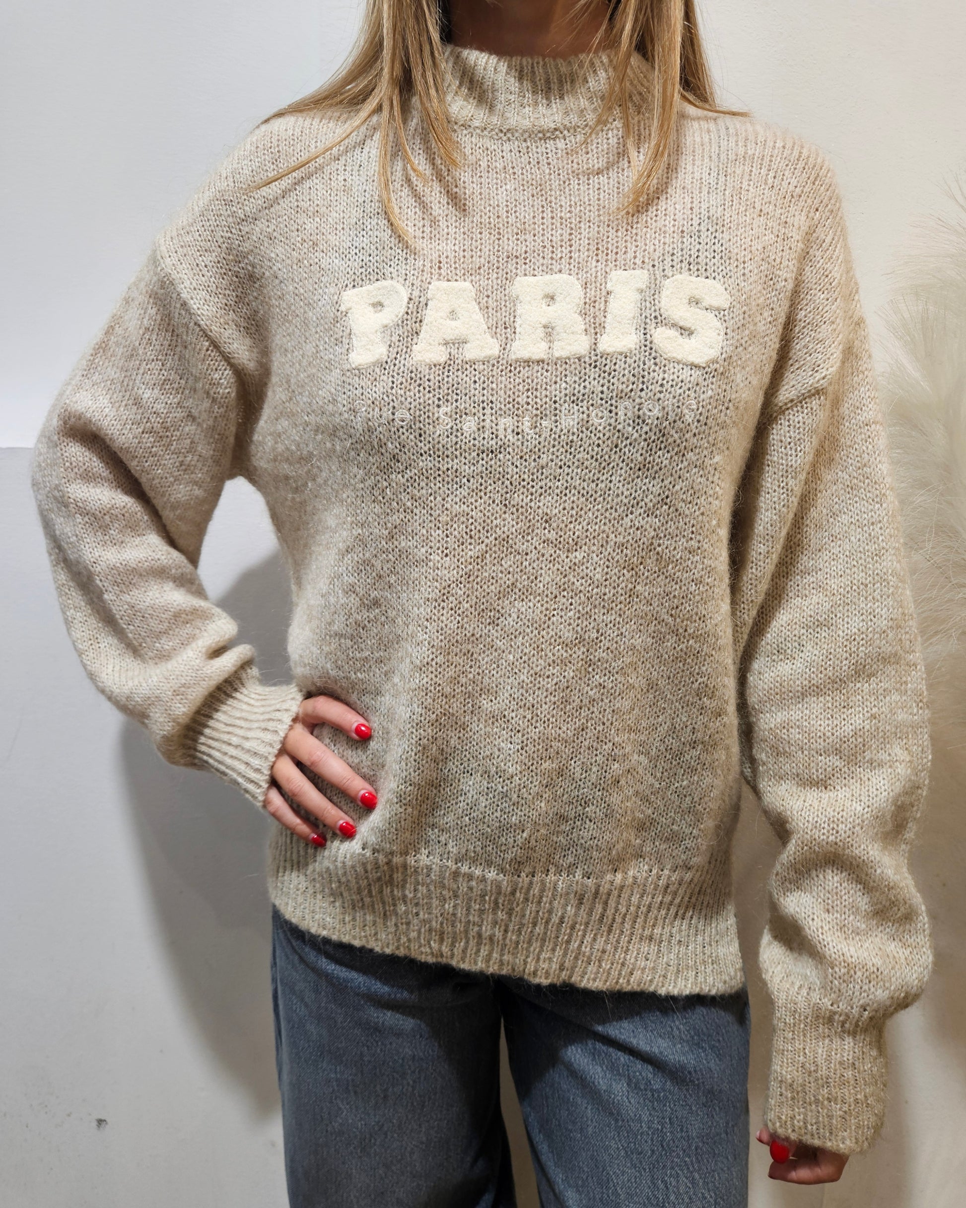 Maglia girocollo Kontatto nella tonalità beige con scritta "Paris" frontale.