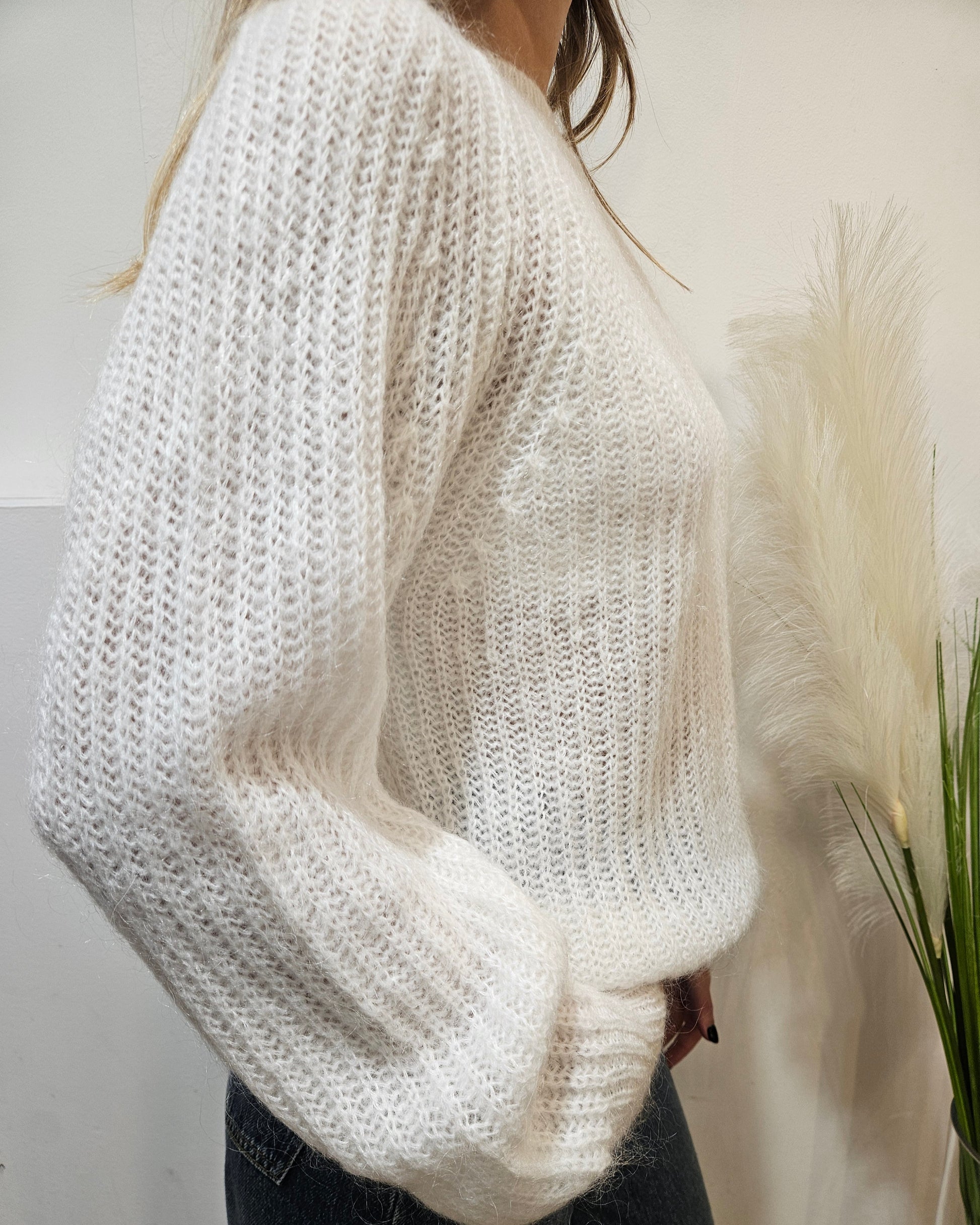 Maglia girocollo Kontatto punto pannocchia nella tonalità bianco, fit morbido.