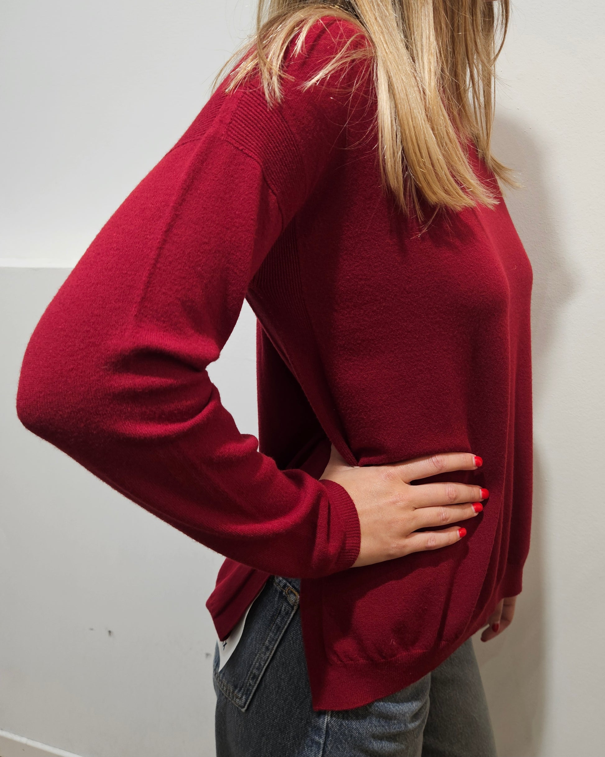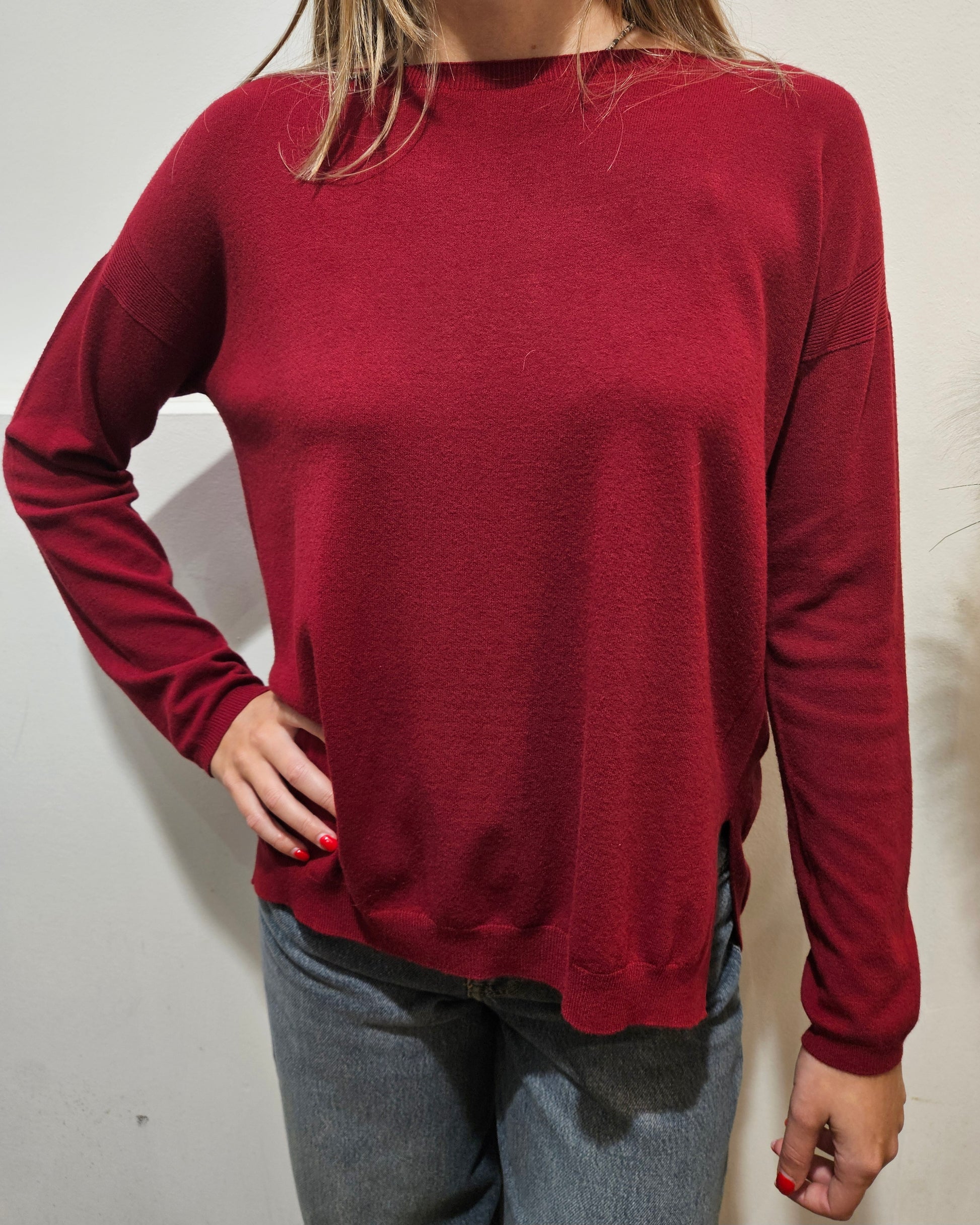Maglia Kontatto con spacchi laterali nella tonalità ciliegia.