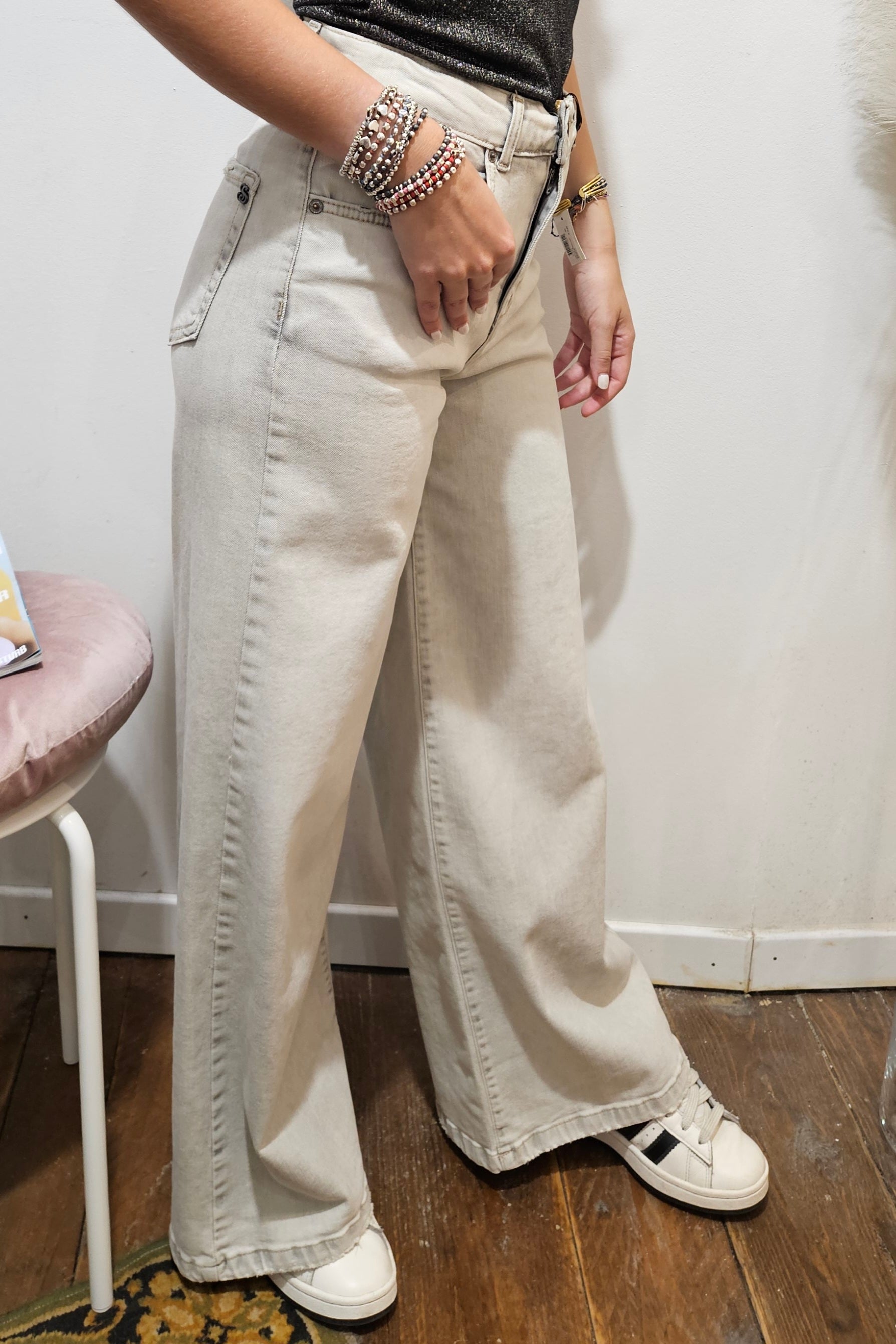 Lavaggio chiaro sfumato, modello confortevole, vita medio-alta, chiusura con zip e bottone.