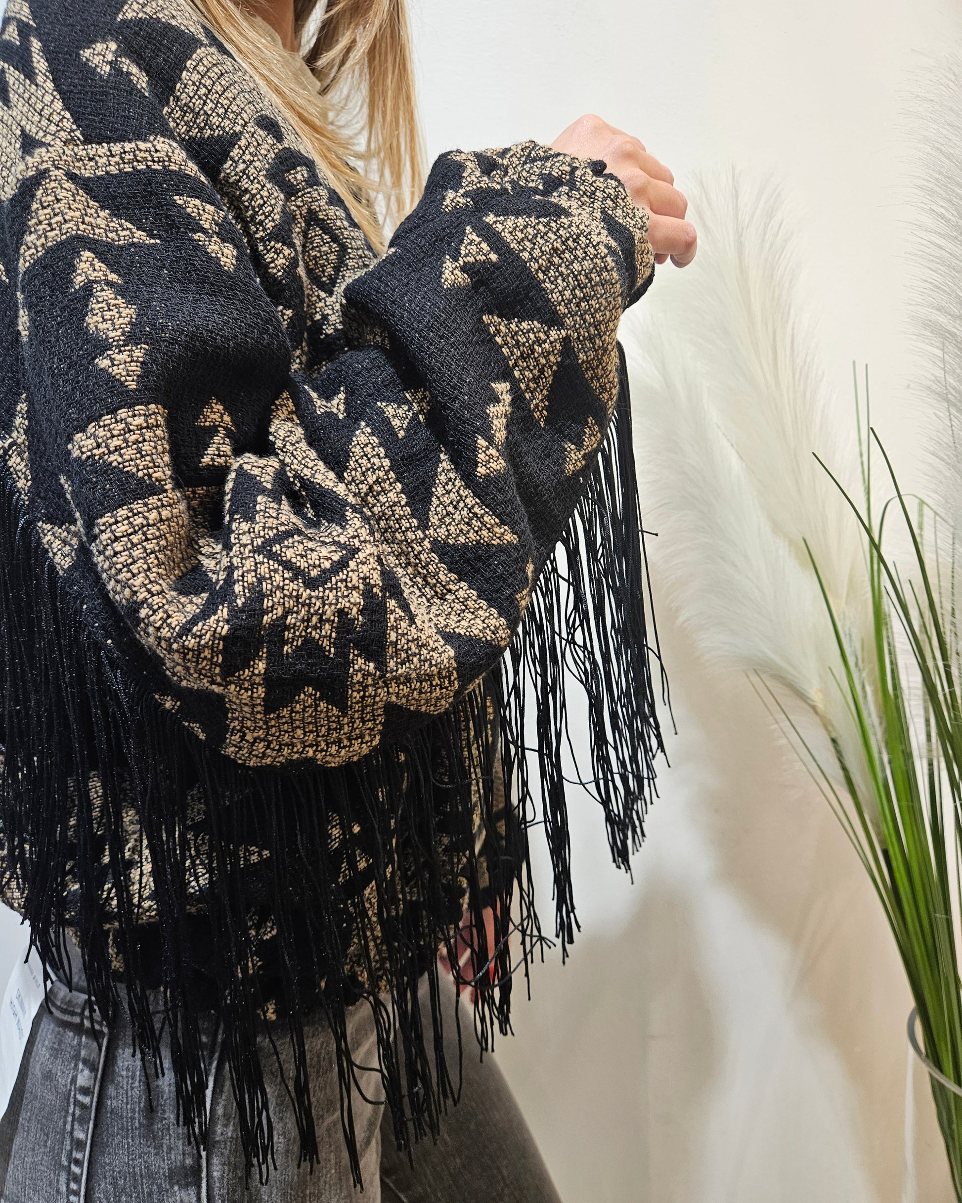 Susy Mix Bomber jacquard con frange