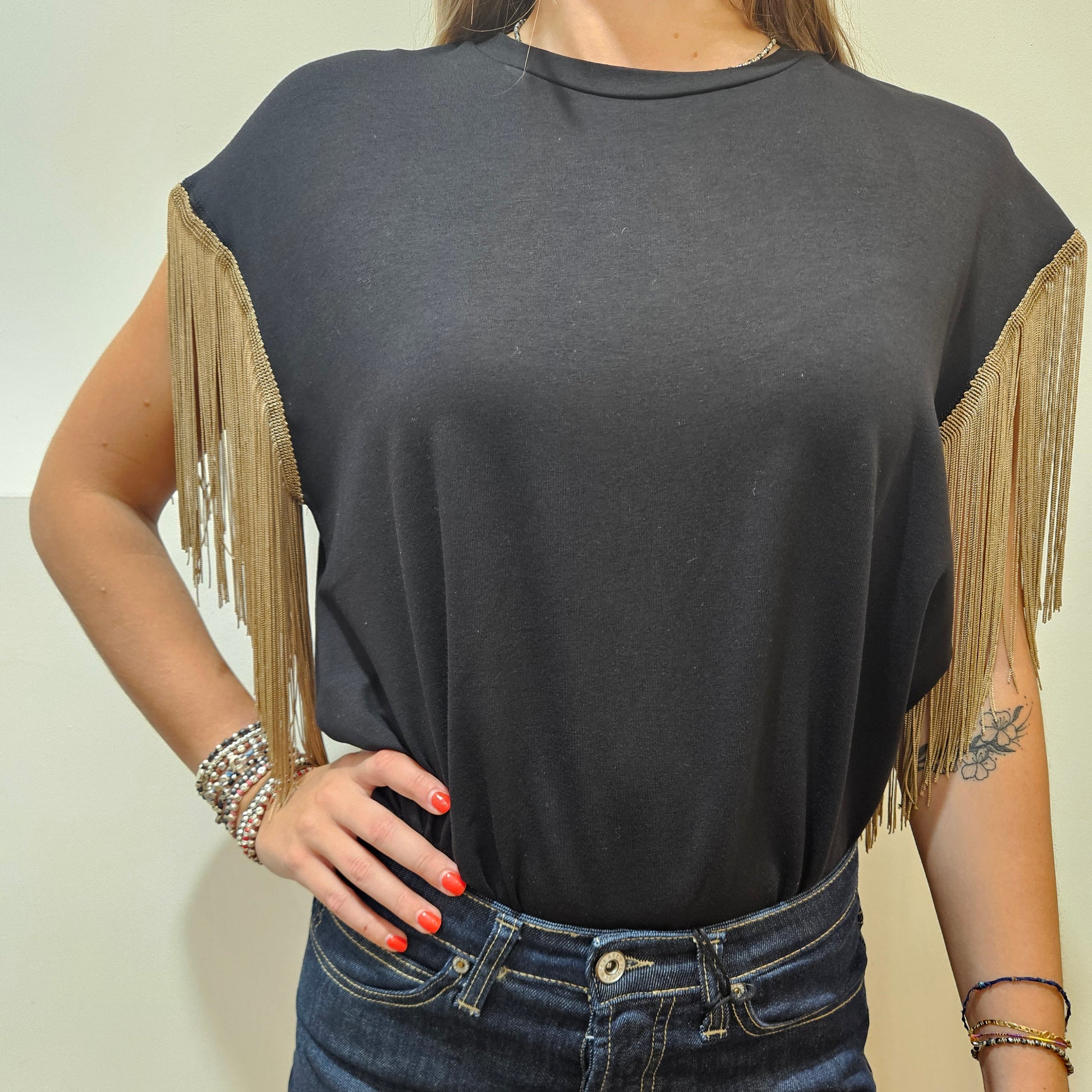 Susy Mix canotta con frangia nuova collezione nella tonalità nero.