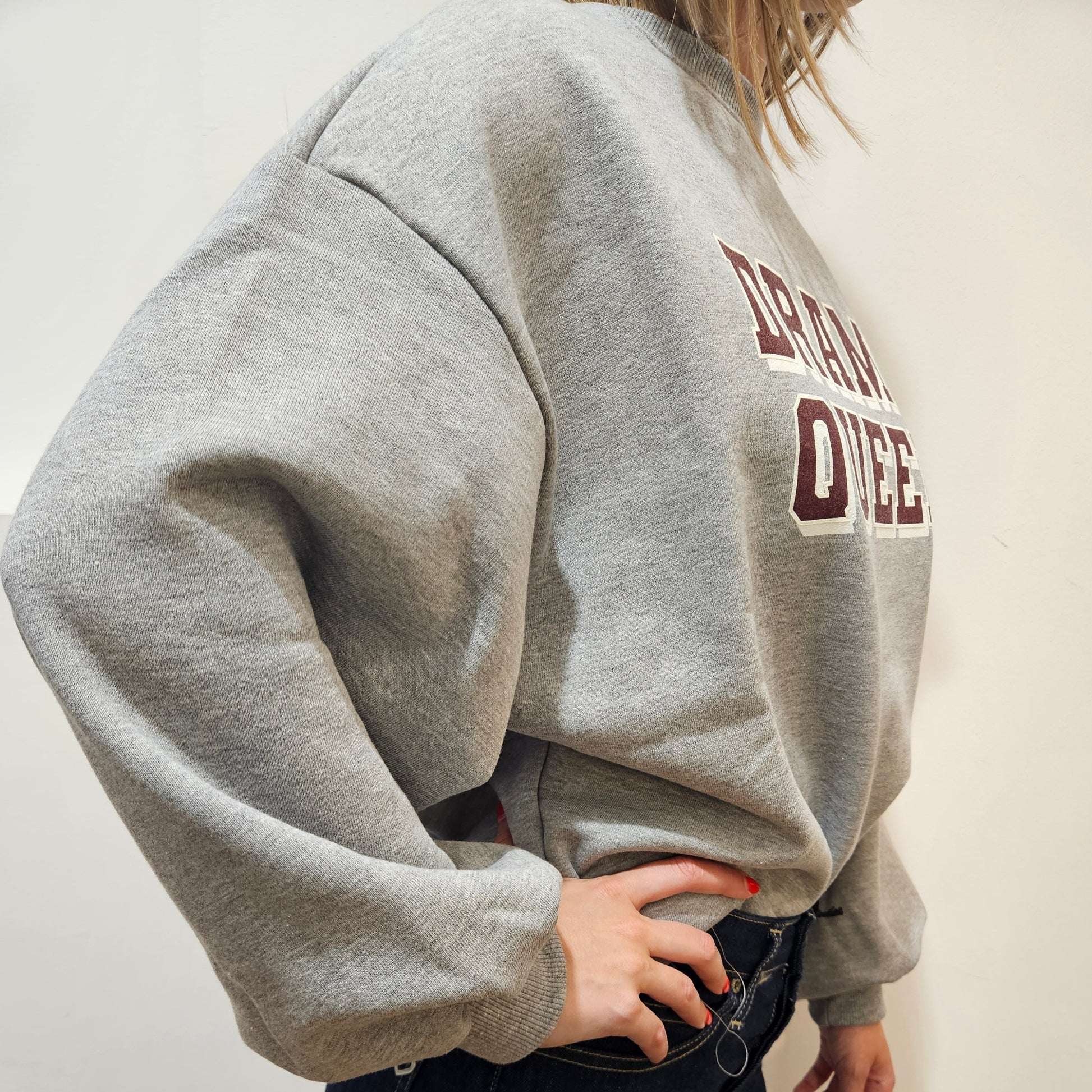 Susy Mix felpa girocollo nuova collezione autunno-inverno nella tonalità grigio. Scritta frontale.