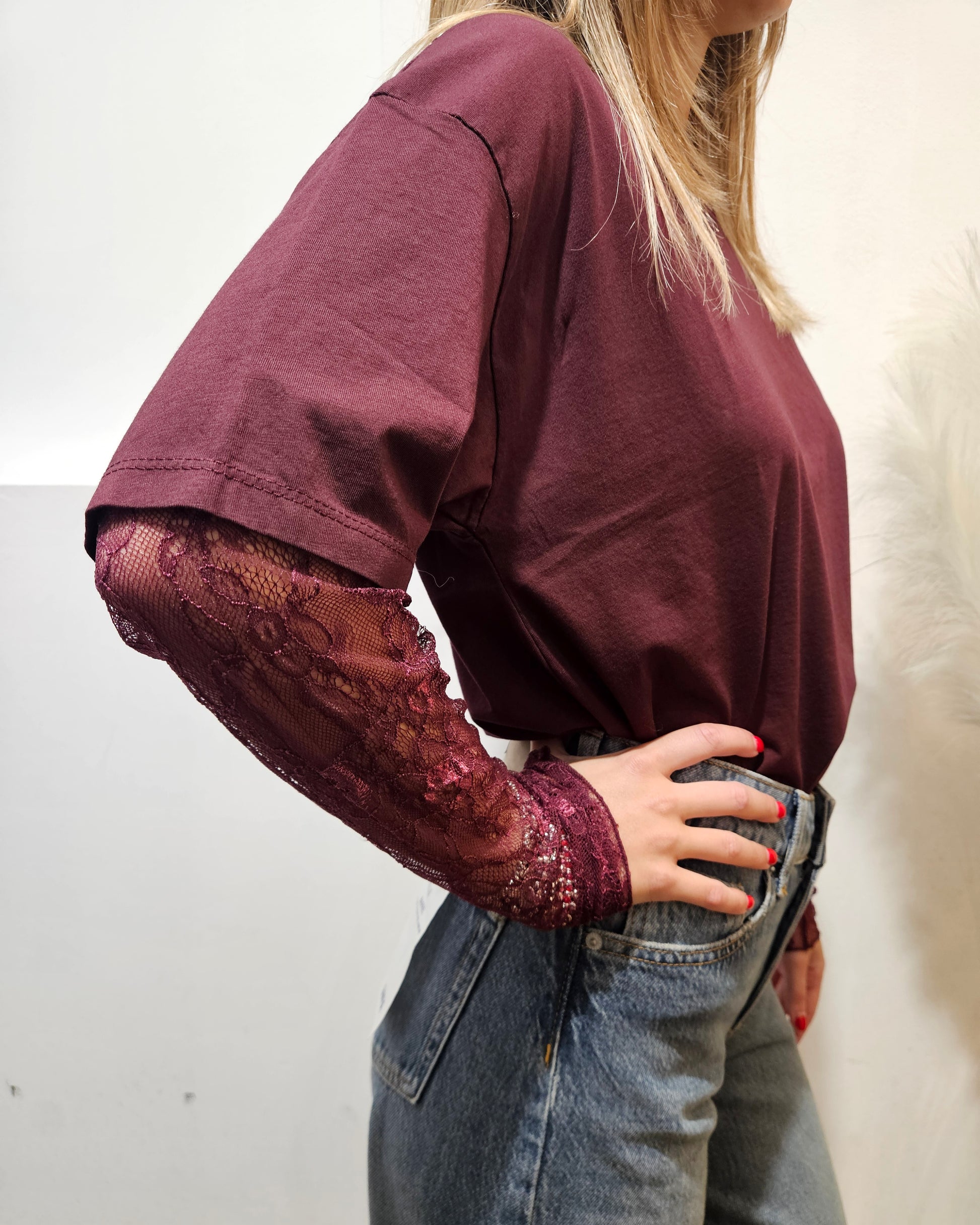 Maglia con pizzo Susy Mix nella tonalità bordeaux.