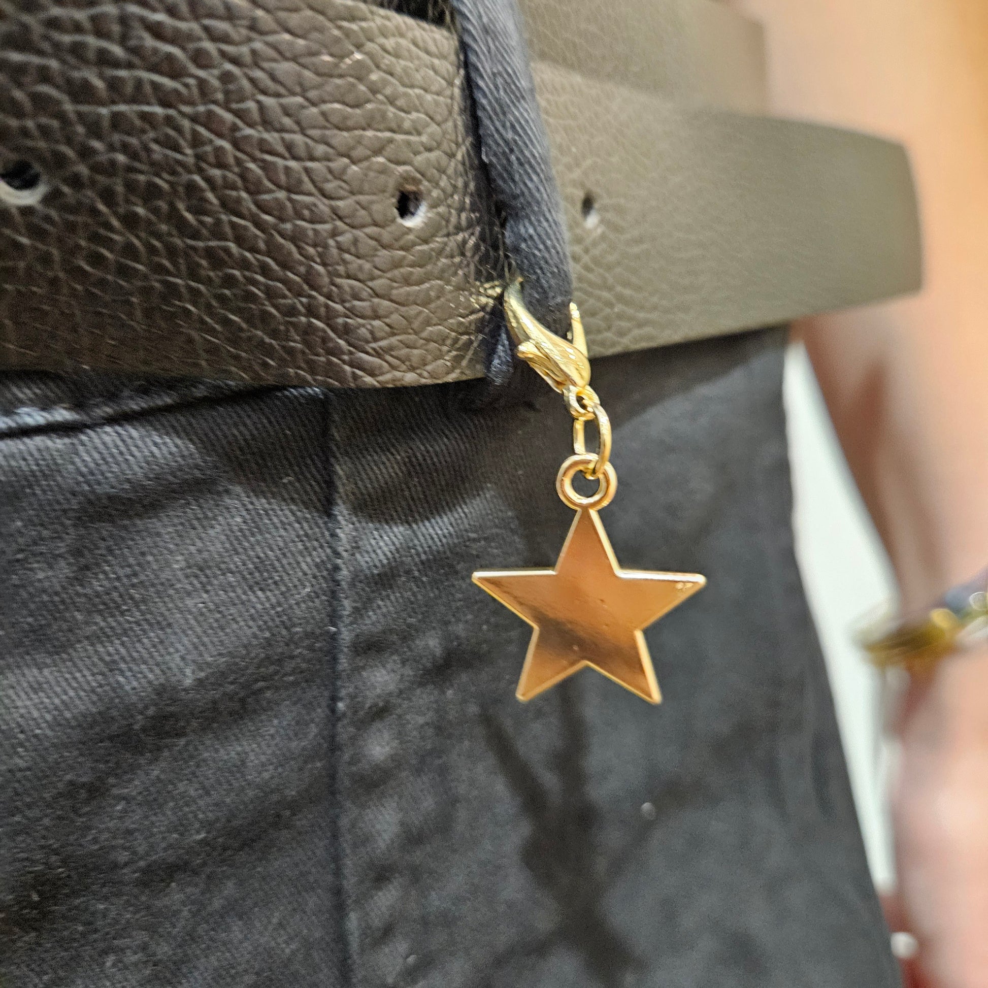 Susy Mix Pantalone nella tonalità nero ad ovetto con cintura e tasca laterale. Incluso ciondolo a stella.