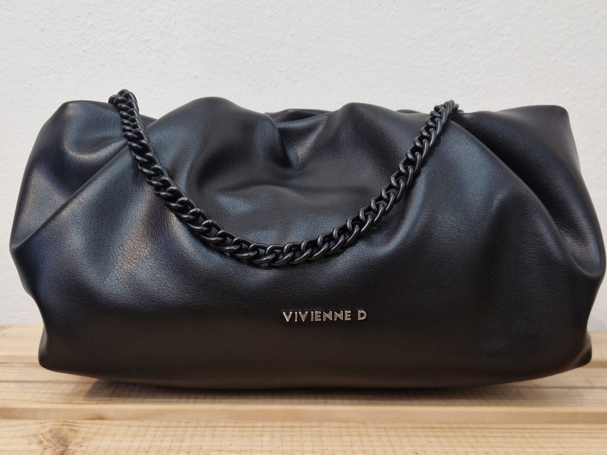 Borsa a mano in ecopelle liscia con due tasche interne di cui una con zip, logo argento, chiusura con automatico, manico a catena fisso, manico in ecopelle.
